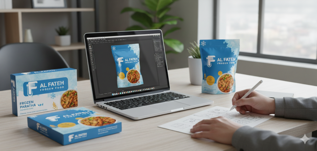 - Product packaging design (2–3 mockups with dieline-ready files)